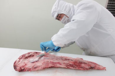 枝肉分割に代表される食肉のカット工程は、体力や技術に加え骨格など専門的な知識が必要な作業です。