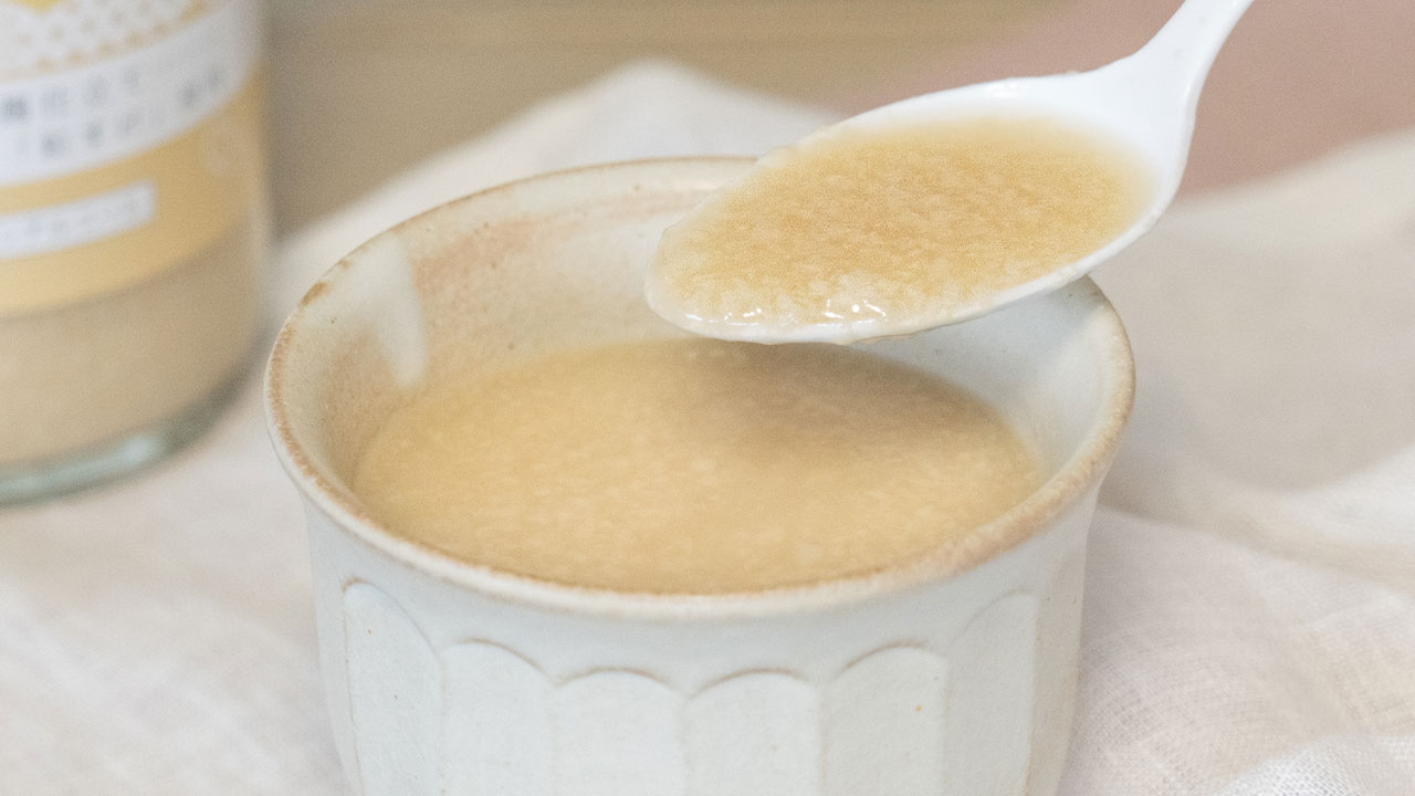 粒すけで作った甘酒はとろりとした滑らかな口当たりでお米の発酵の甘さをお楽しみいただけます。